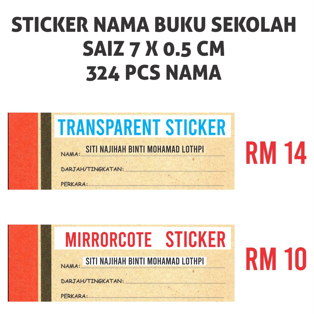 Sticker Nama Buku Sekolah Fail Saiz 7x0 5 Cm 324 Pcs Nama Shopee Malaysia