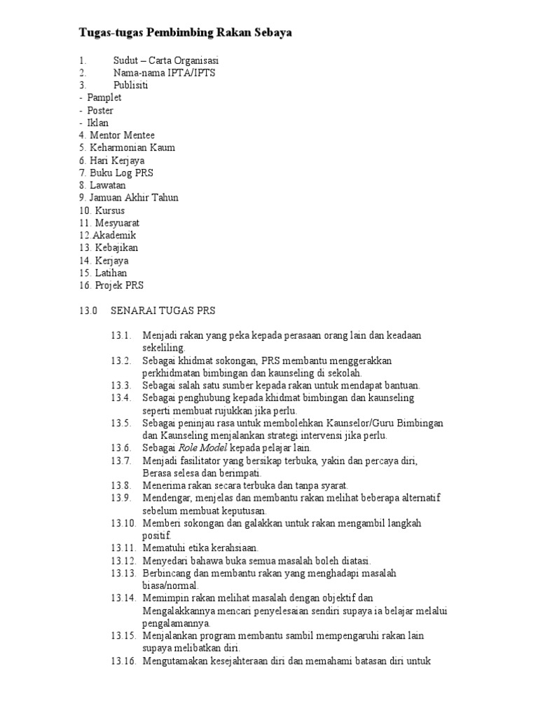 Tugas Pembimbing Rakan Sebaya Musli Blog Pembimbing Rakan Sebaya. Up to 24 cash back Pembimbing Rakan Sebaya akan diselia dengan teliti oleh Kaunselor dalam masa mereka menjalankan tugas. Muat turun halaman 1-39 di AnyFlip.